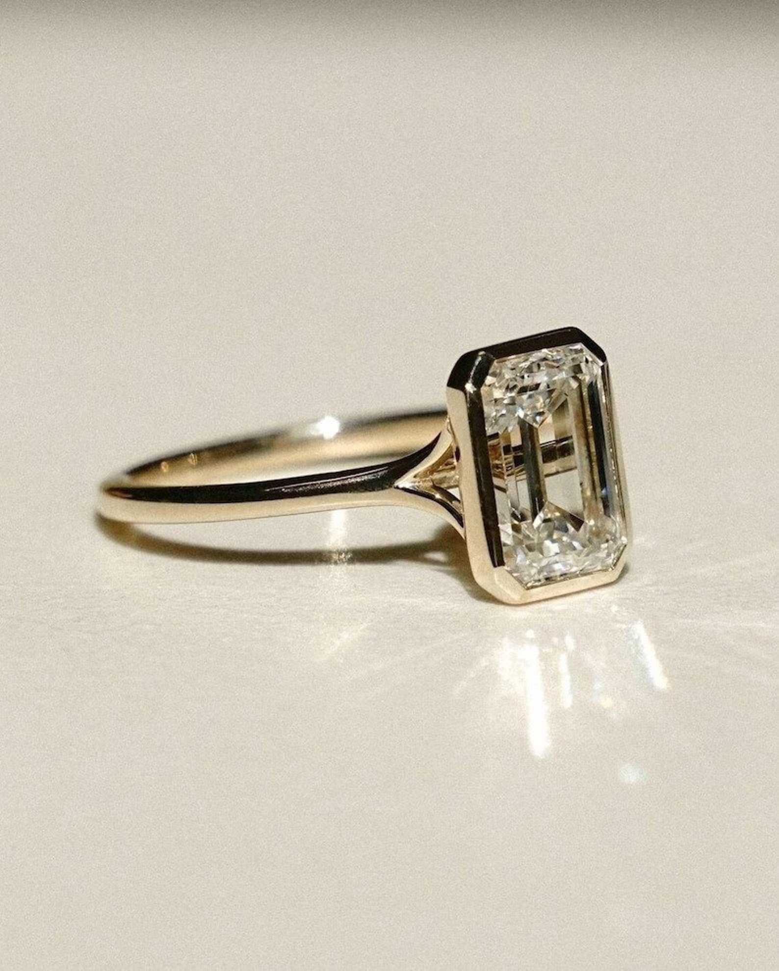 Buy 3 CT Emerald Cut Moissanite Engagement Ring Bezel Set Wedding Rings Fashion & Traditional Jewellery Online