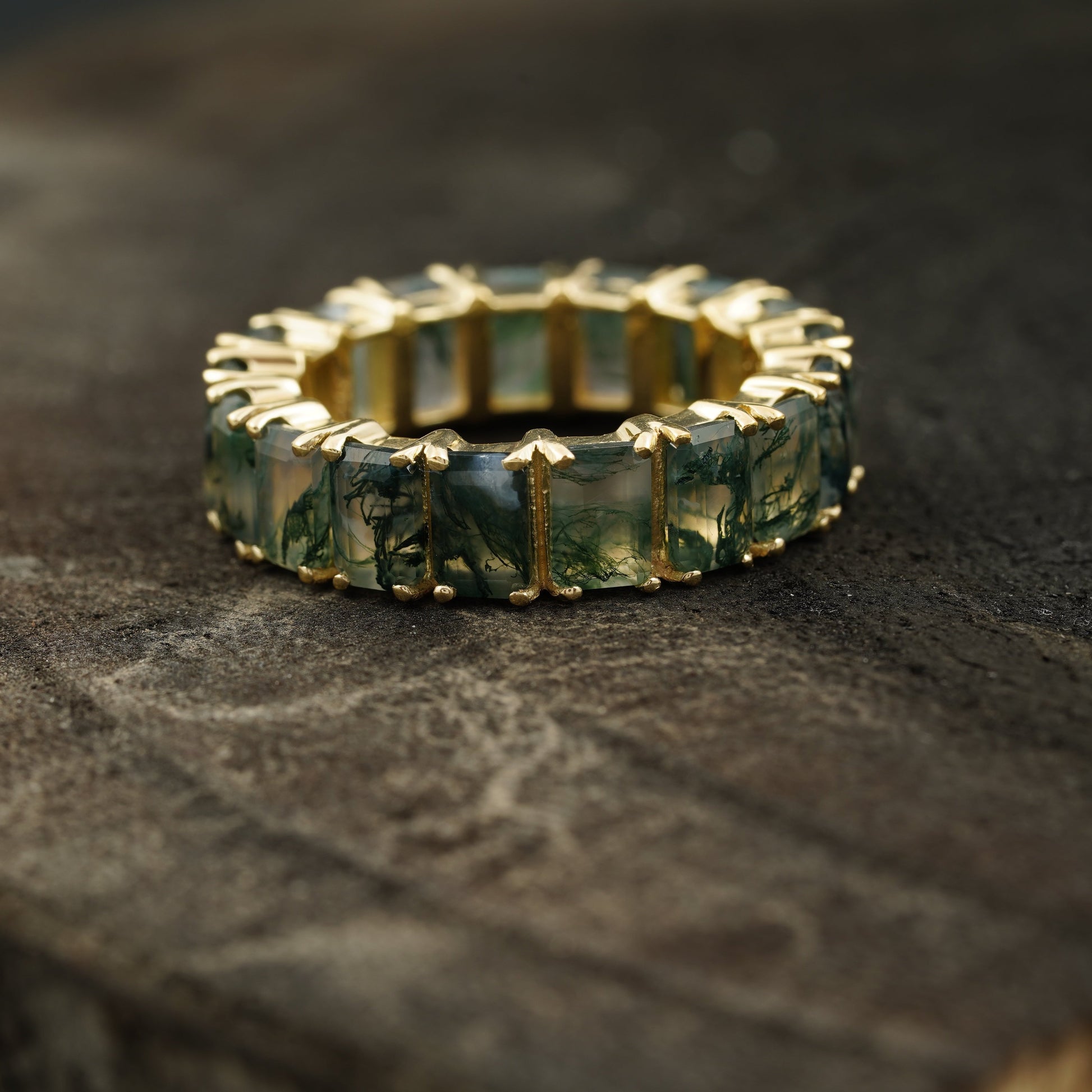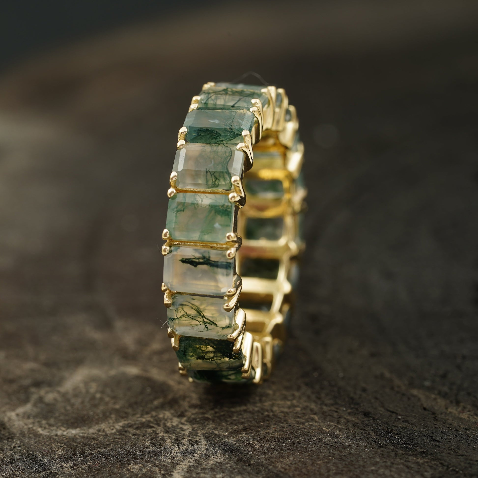 Baguette Cut Moss Agate Wedding Band 10K Sold Gold