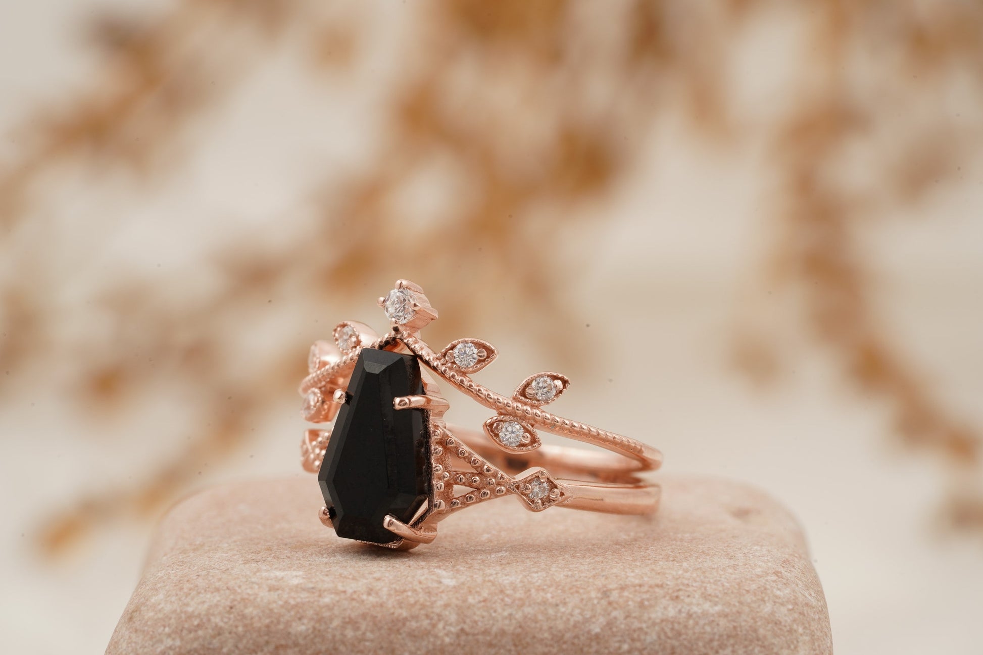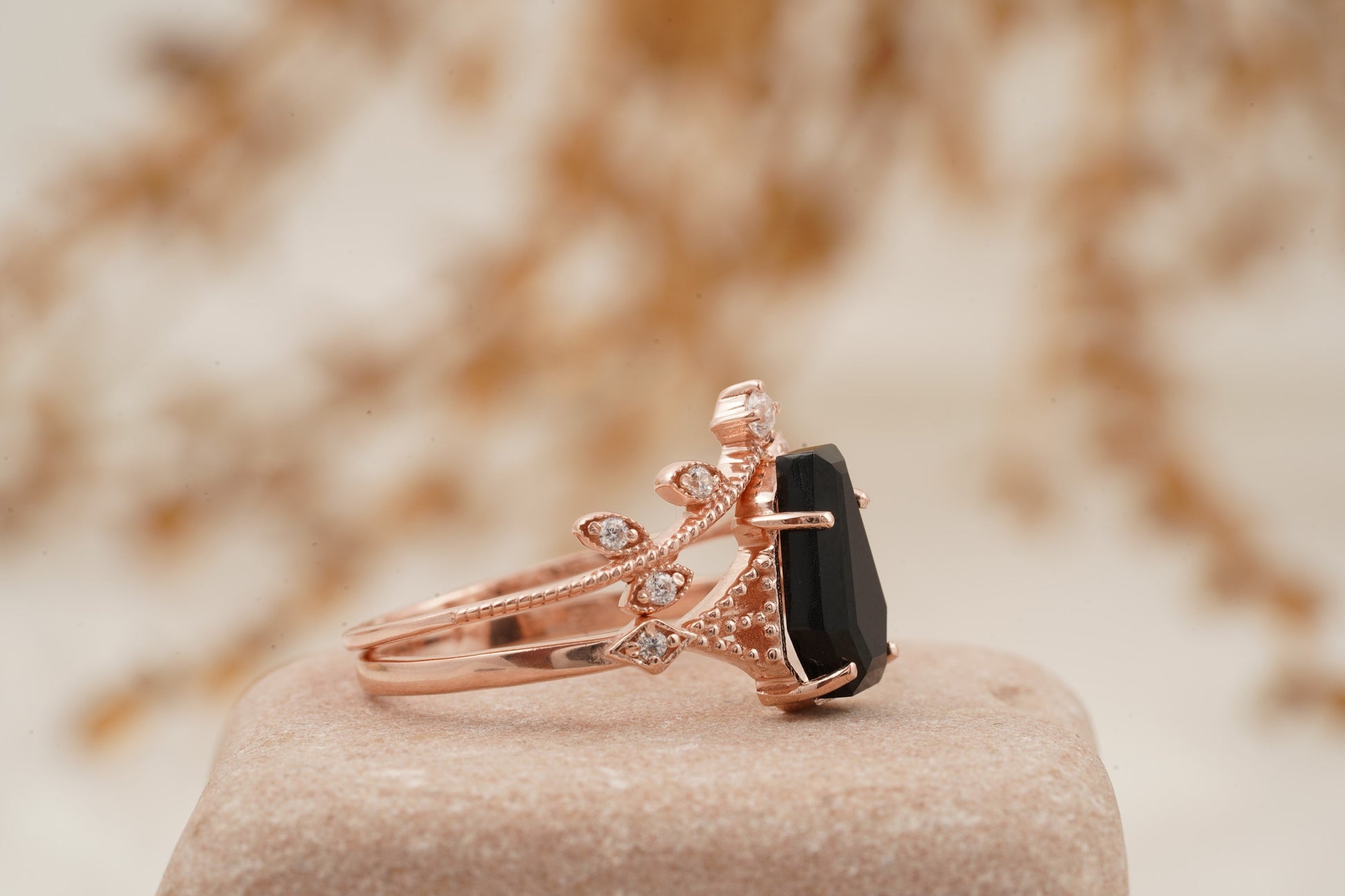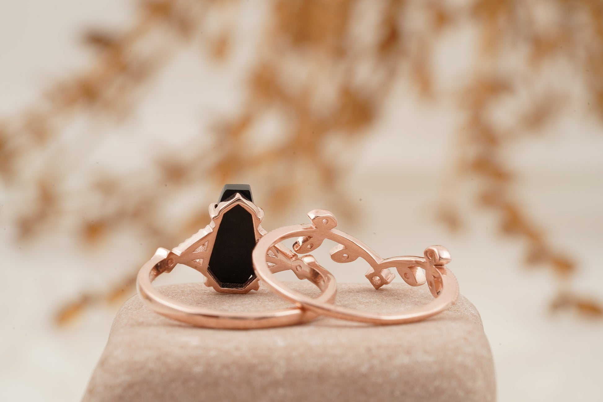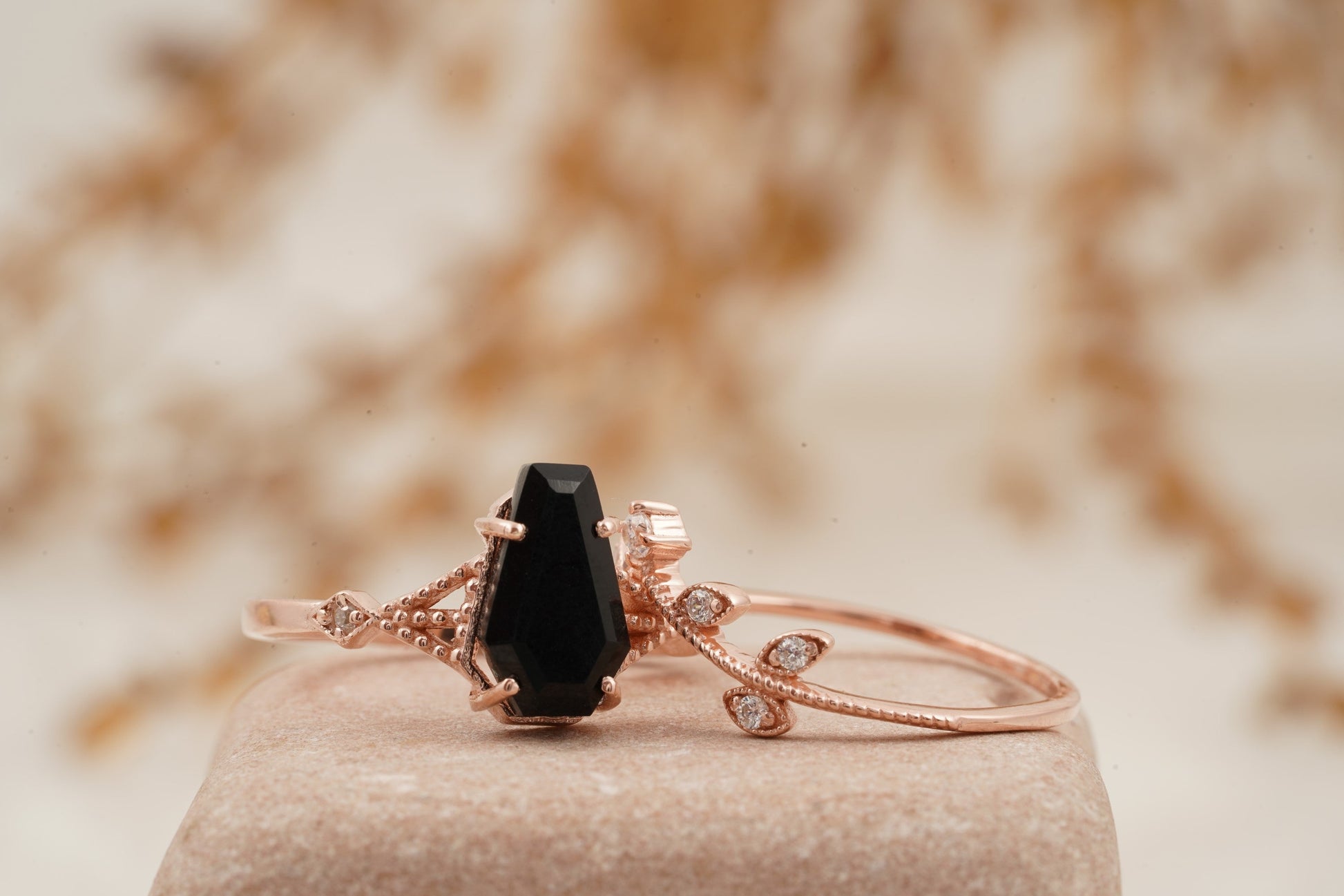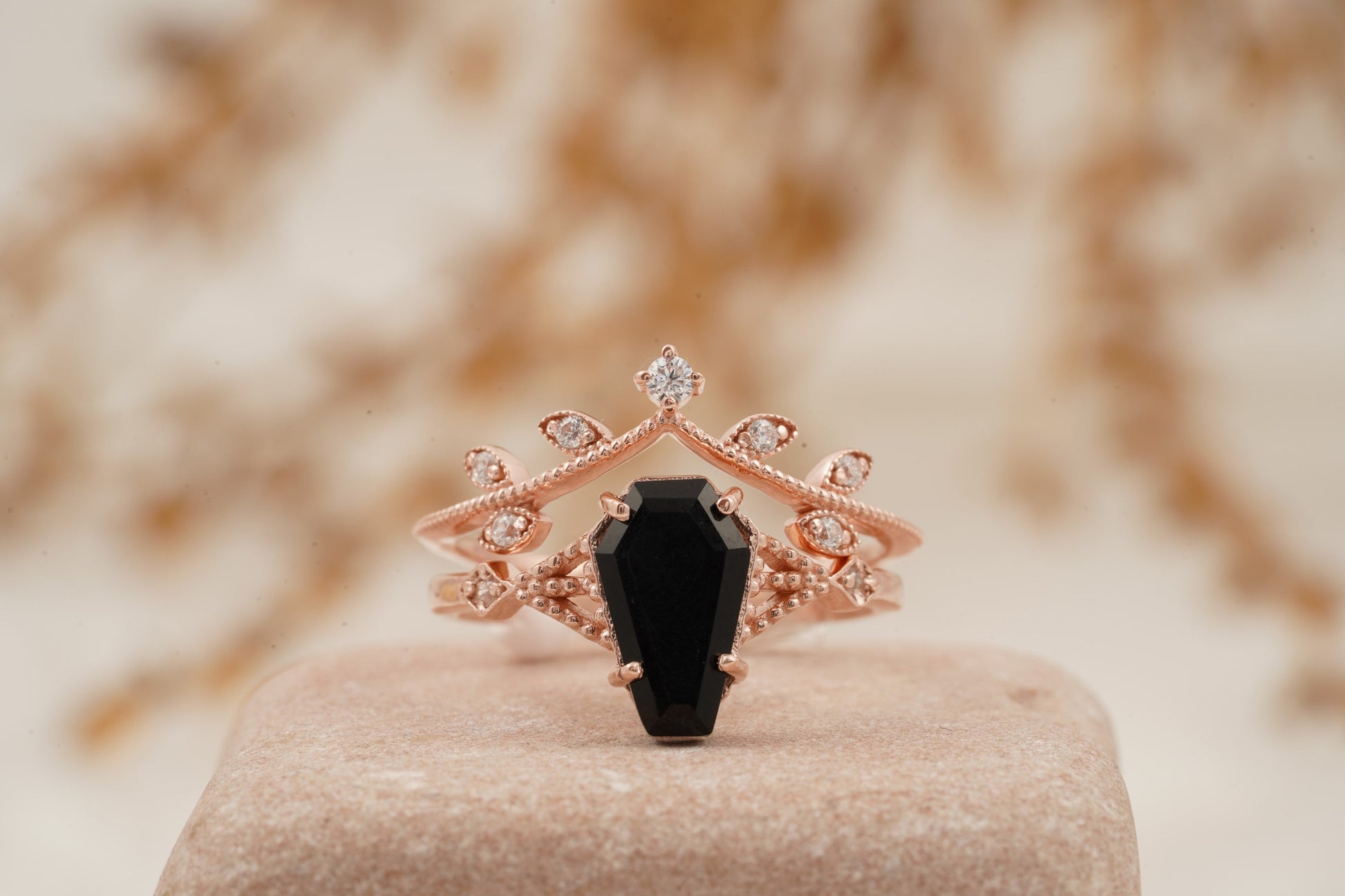 Buy Coffin Shape Black Onyx Engagement Ring Set Curved Stacking Band & Diamond, Fashion & Traditional Jewellery Online Product DetailsAbout This Ring -