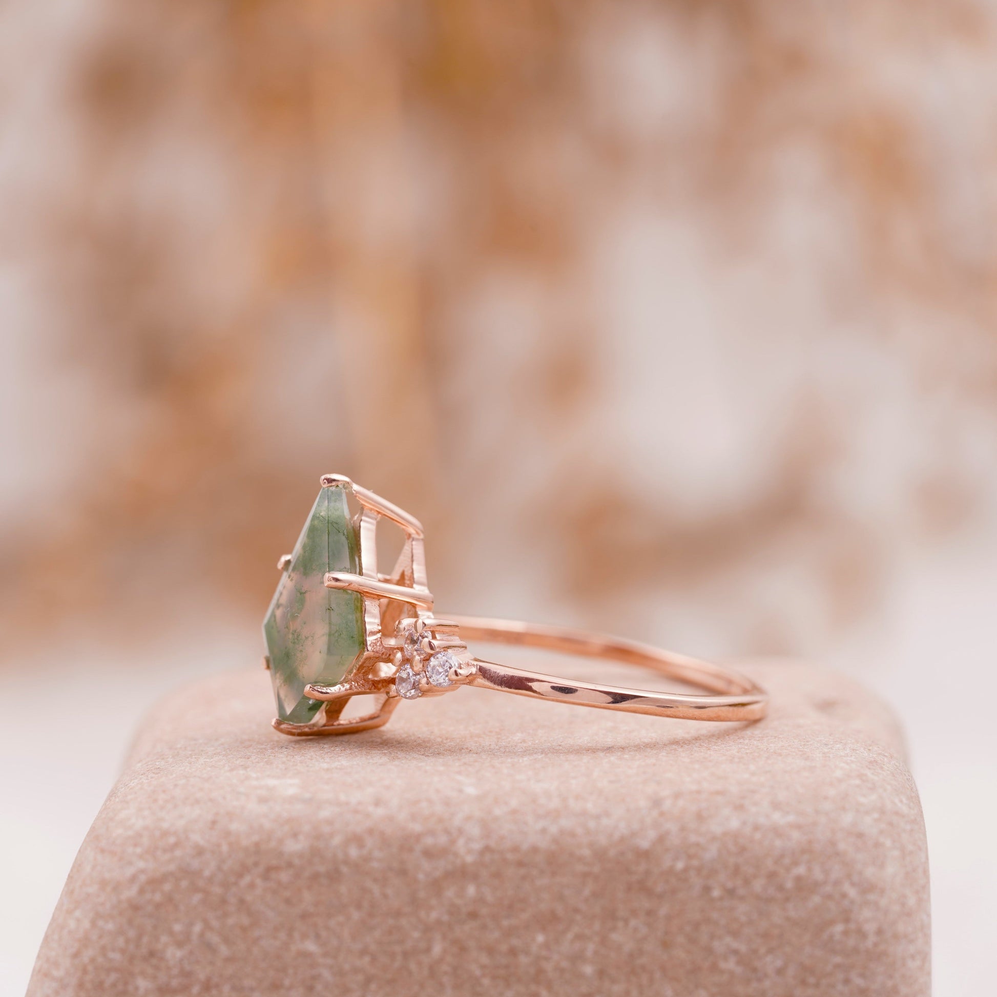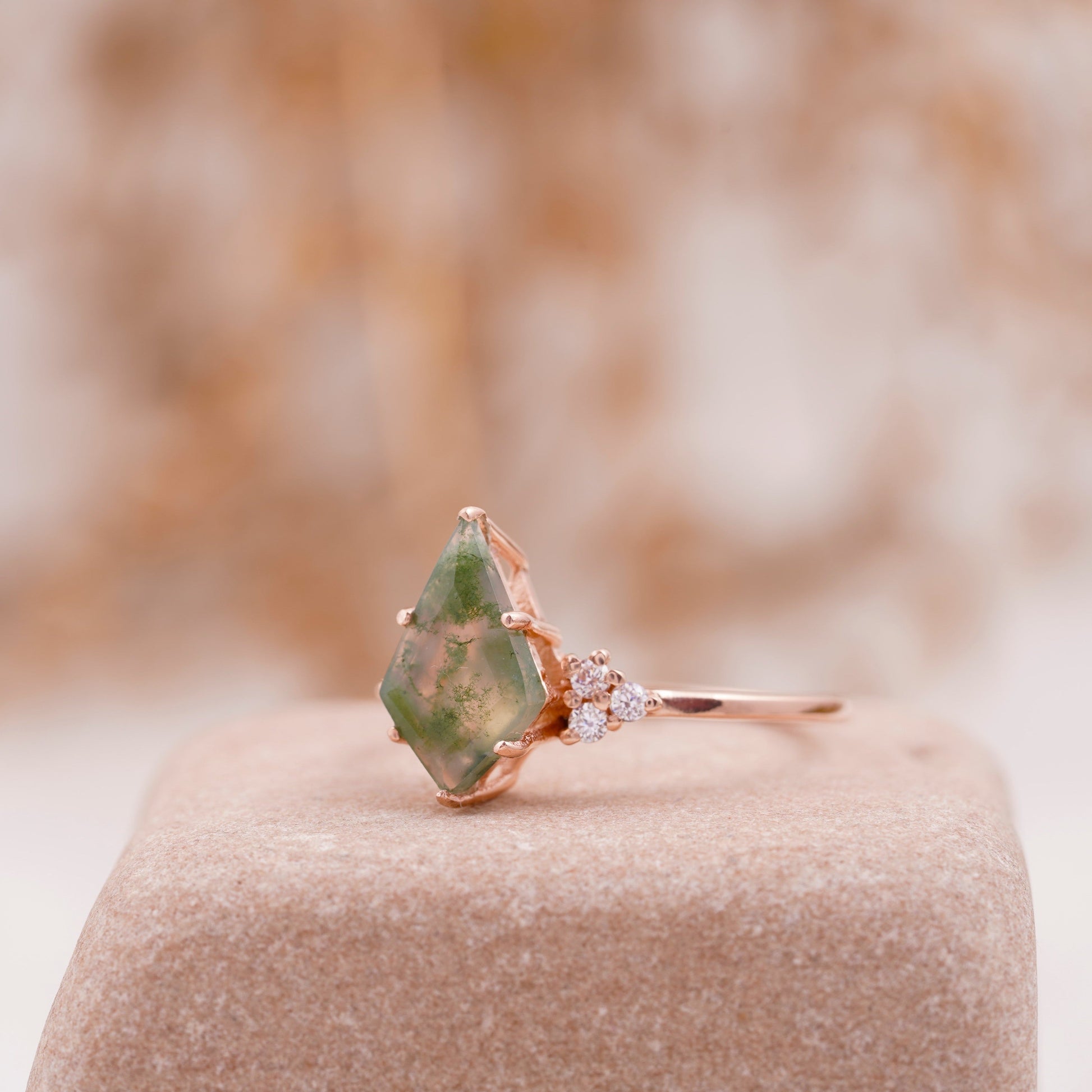Buy Kite Shaped Moss Agate Engagement Ring & Diamond, Fashion & Traditional Jewellery Online Product DetailsAbout This Ring -