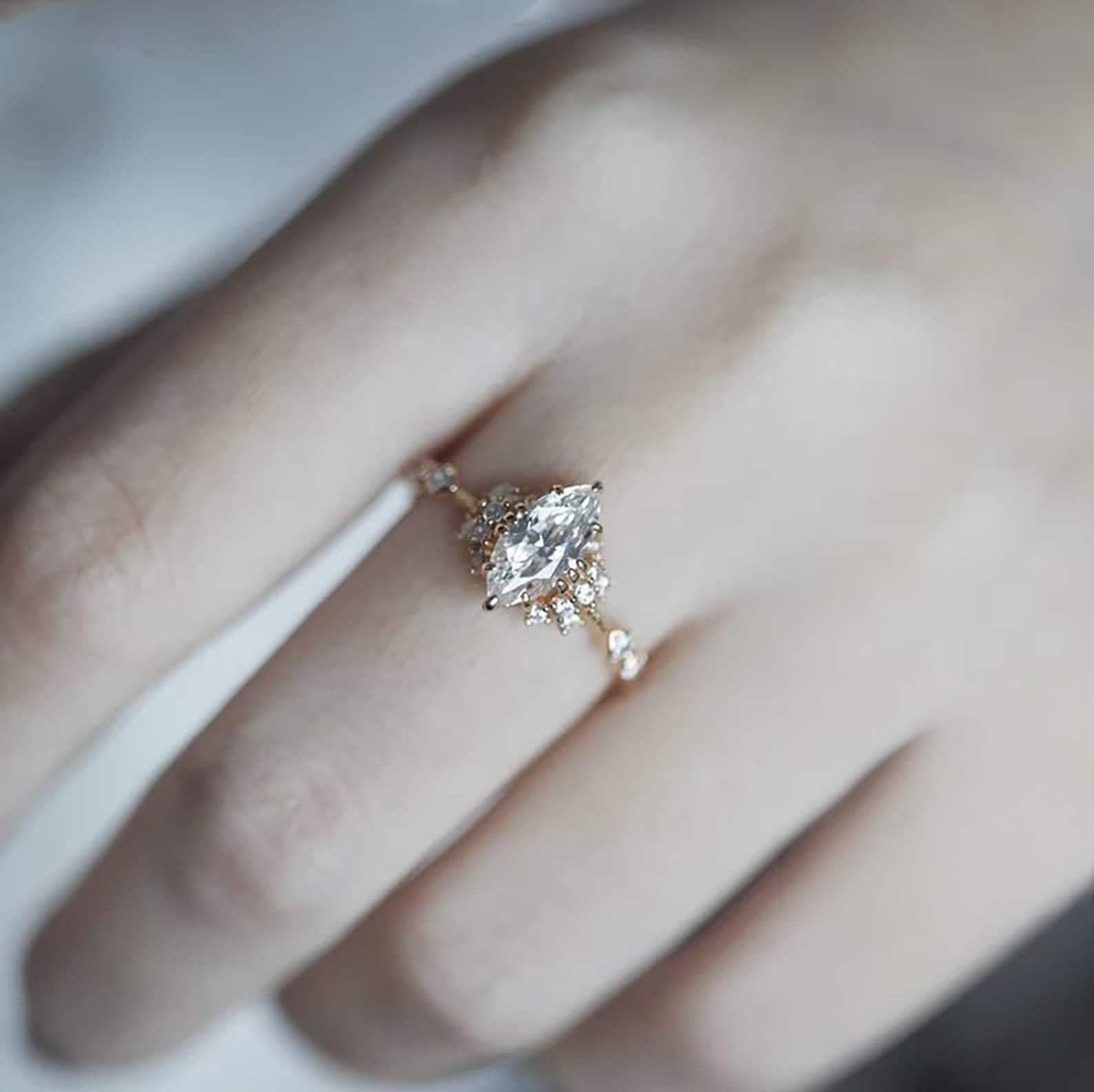 Marquise Cut Moissanite Engagement Unique Promise Ring