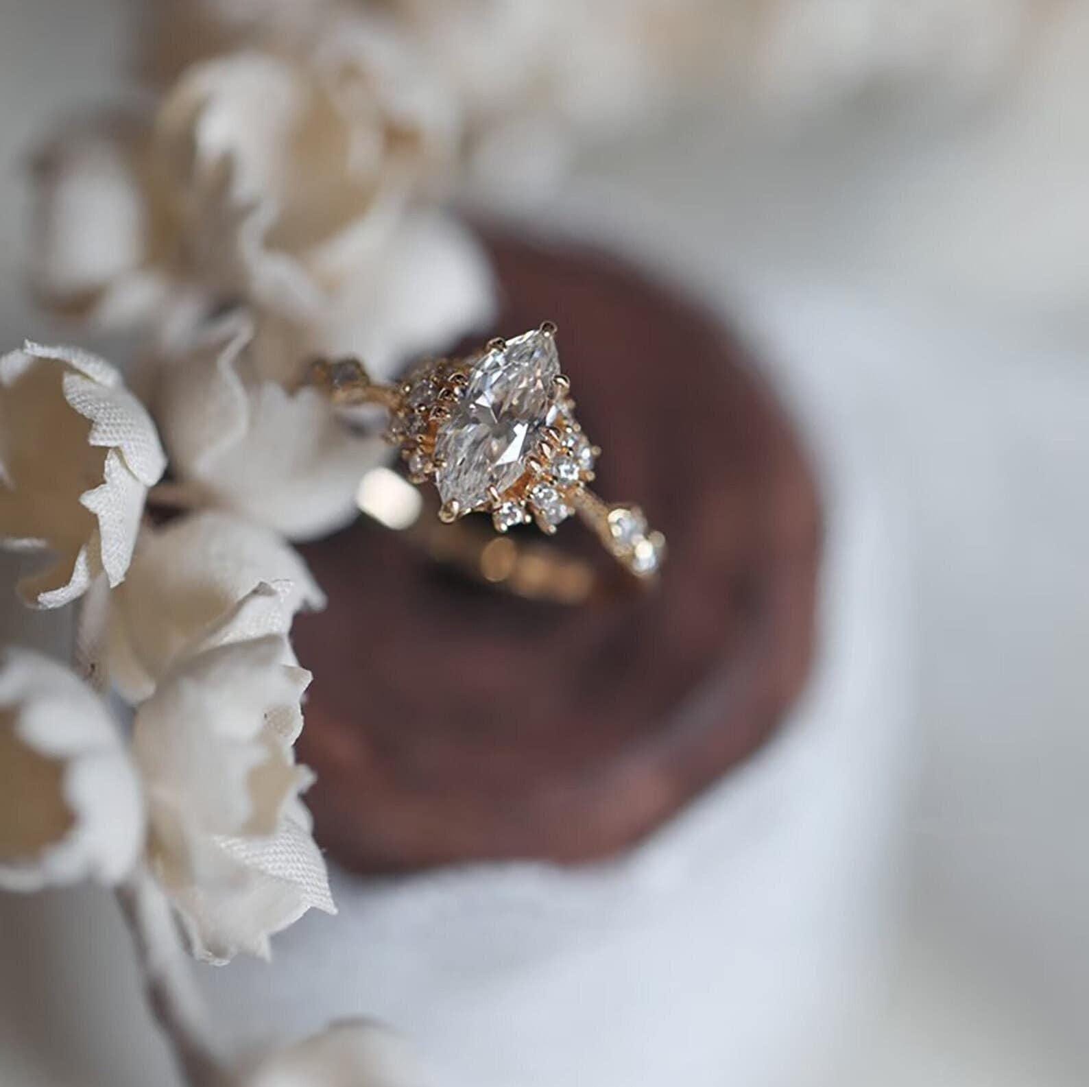 Buy Marquise Cut Moissanite Engagement Unique Promise Ring Fashion & Traditional Jewellery Online.