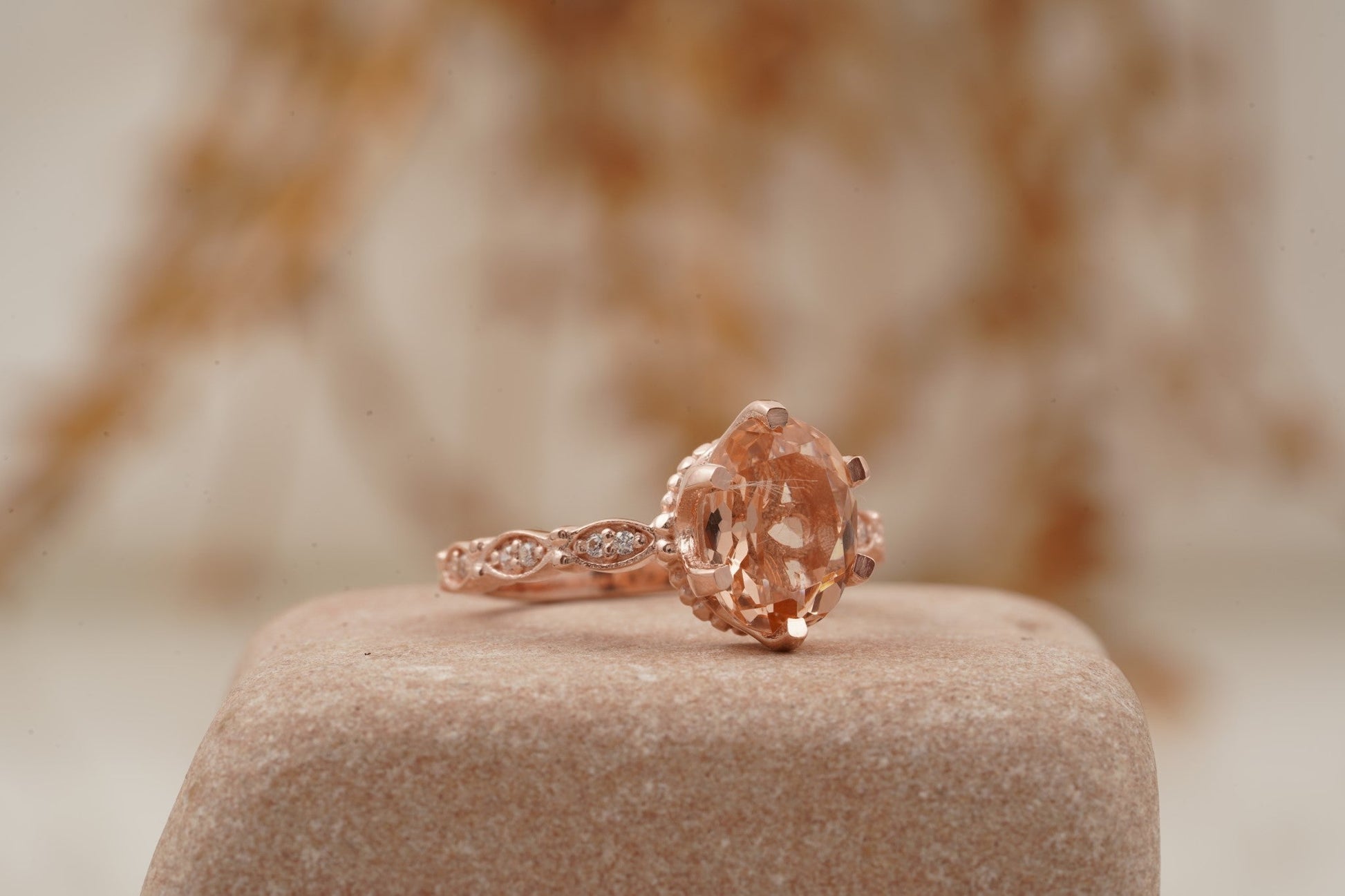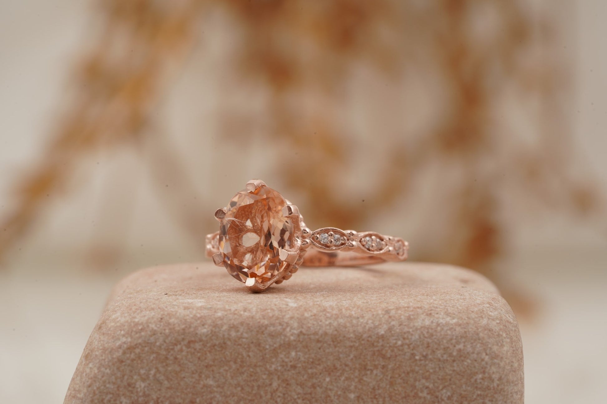 Oval Cut Morganite 2.5ct Engagement Rings For Women