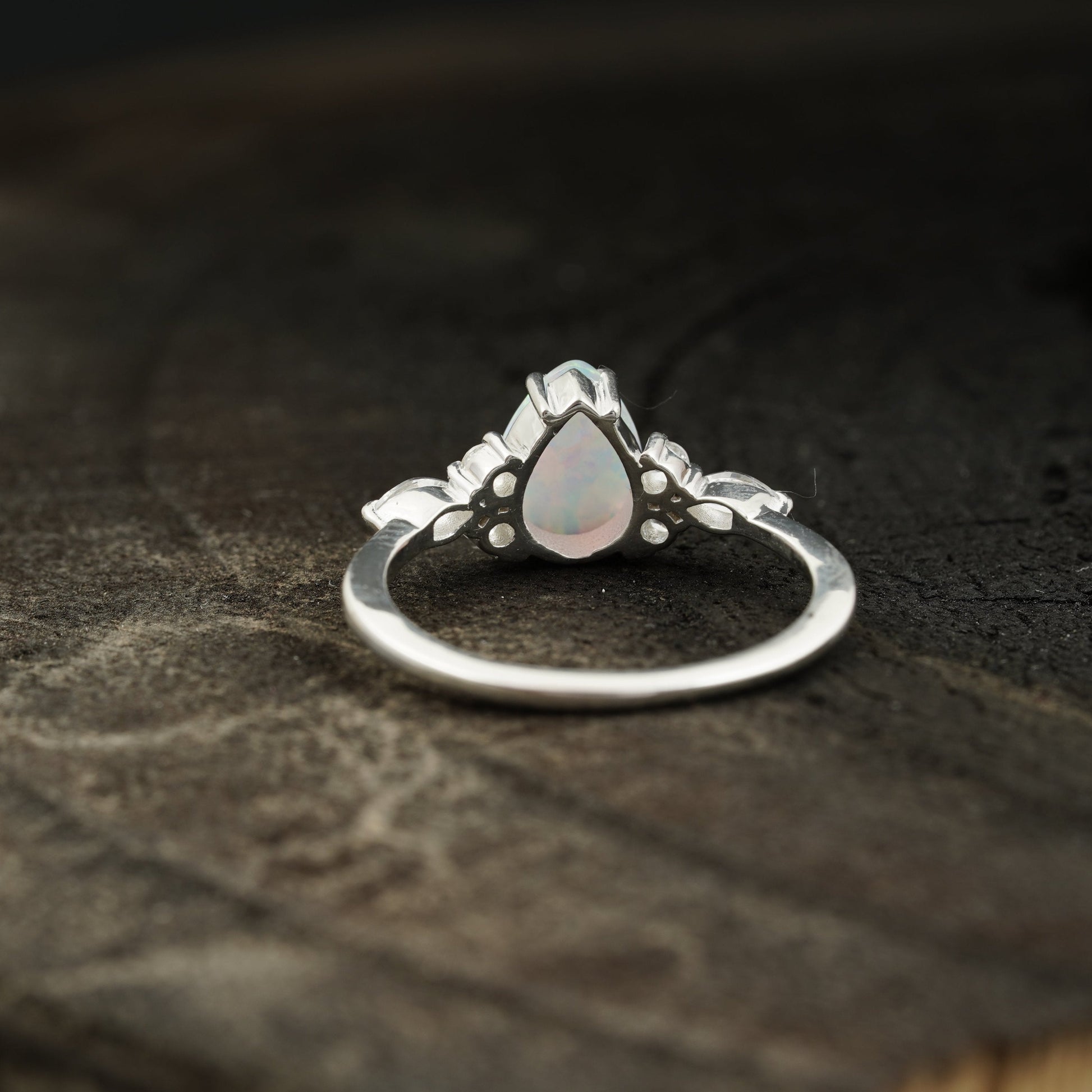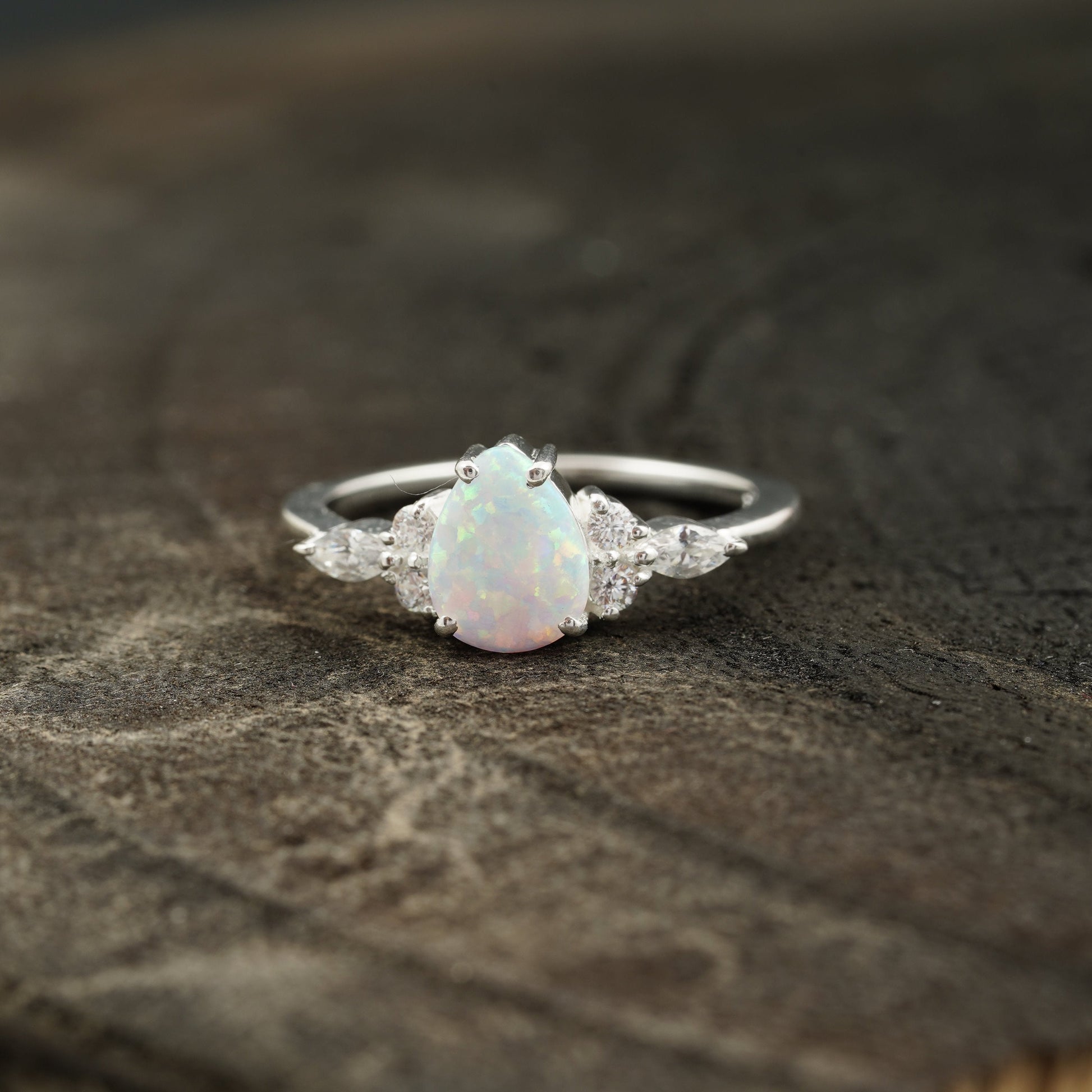 pear shaped opal cluster engagement ring | Promise bridal ring