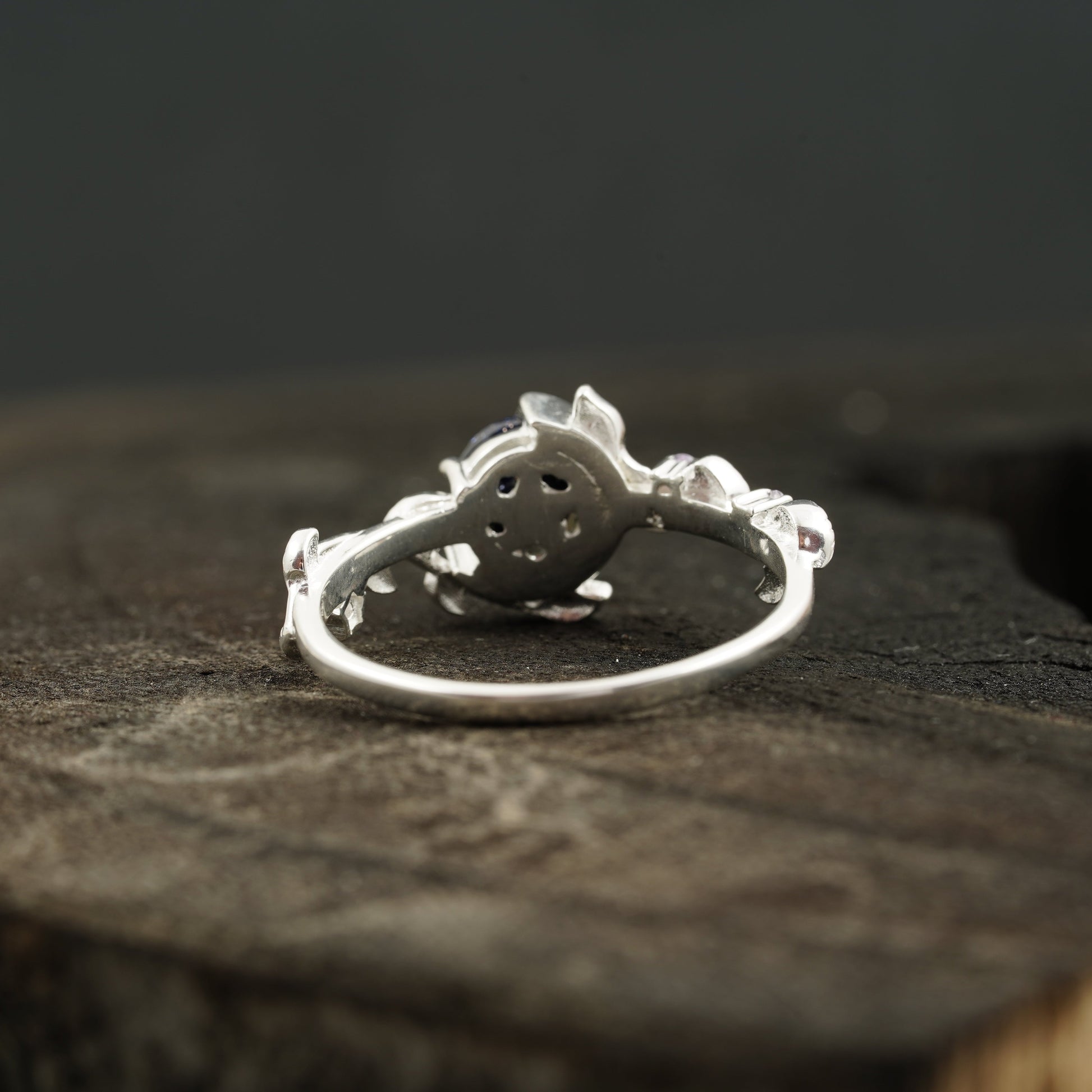 Buy Round Blue Sandstone Leaf Design Diamond Band Sterling Silver Engagement Ring & Diamond, Fashion & Traditional Jewellery Online