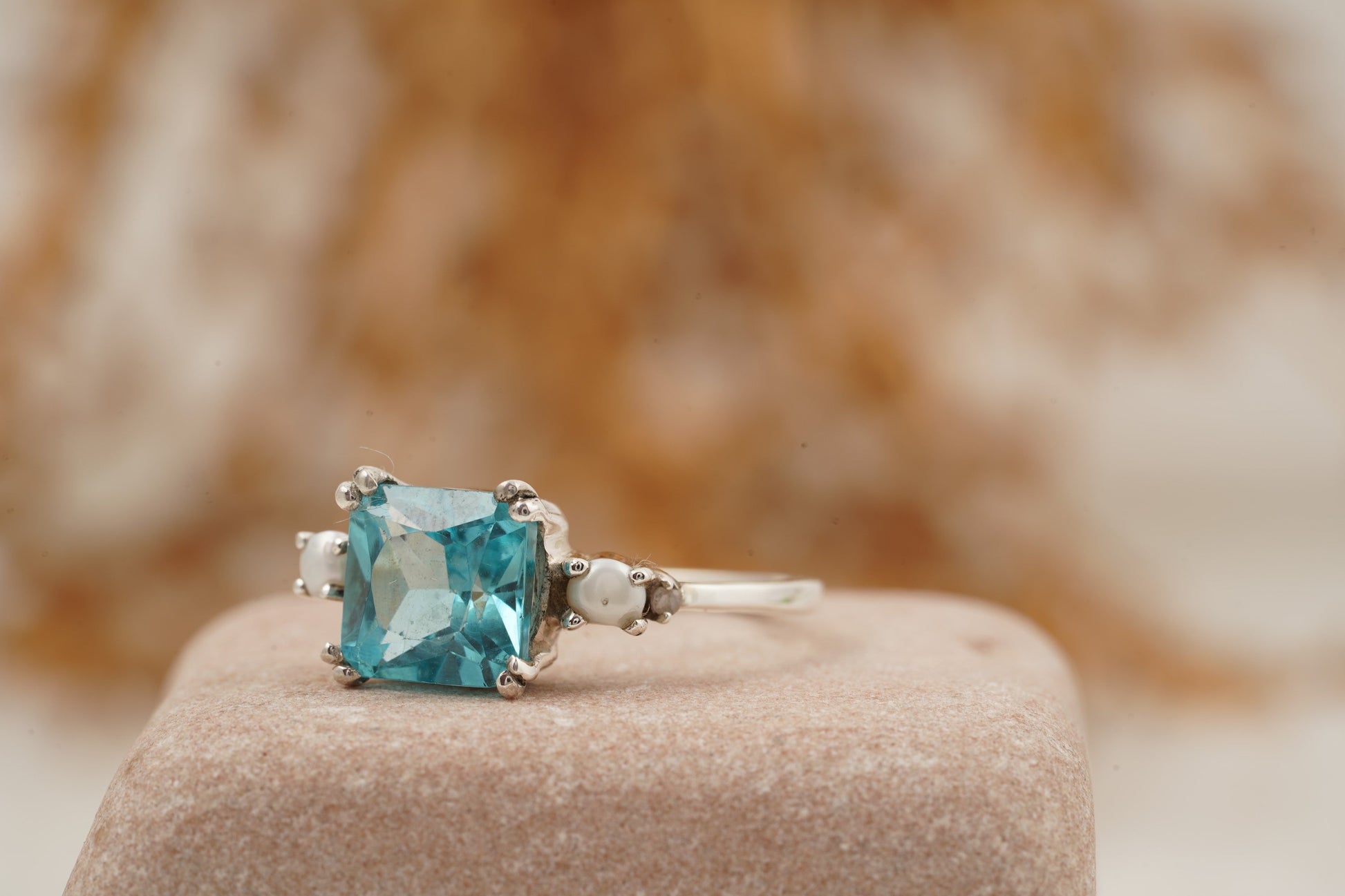 Buy Unique Cushion Cut Aquamarine And Pearl Engagement Ring & Diamond, Fashion & Traditional Jewellery Online Product DetailsAbout This Ring -